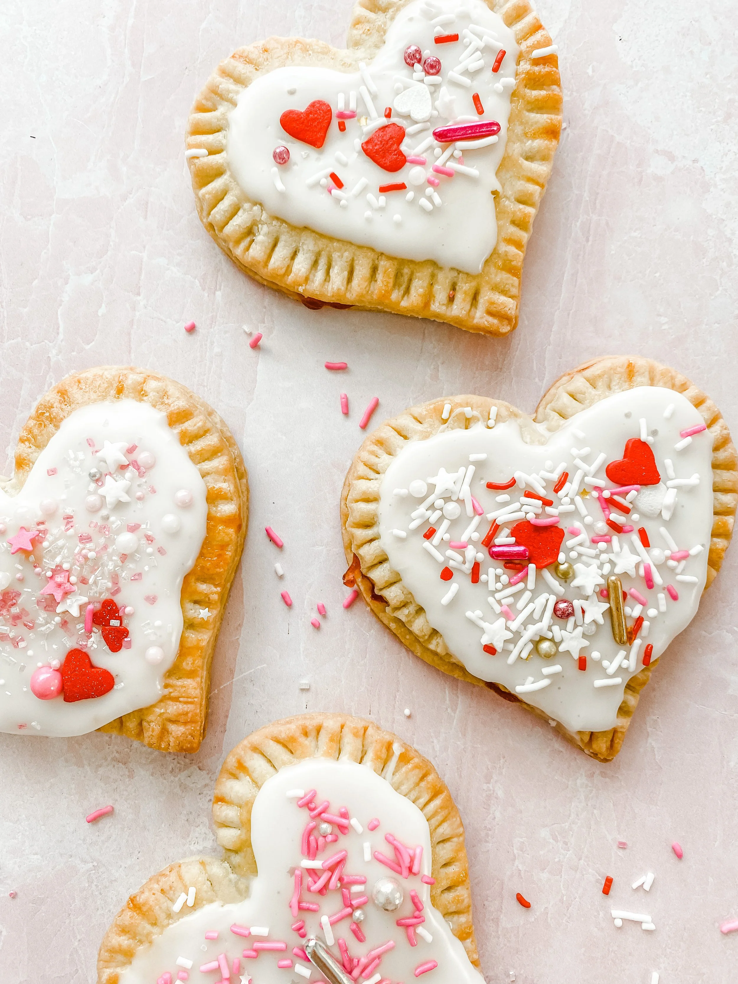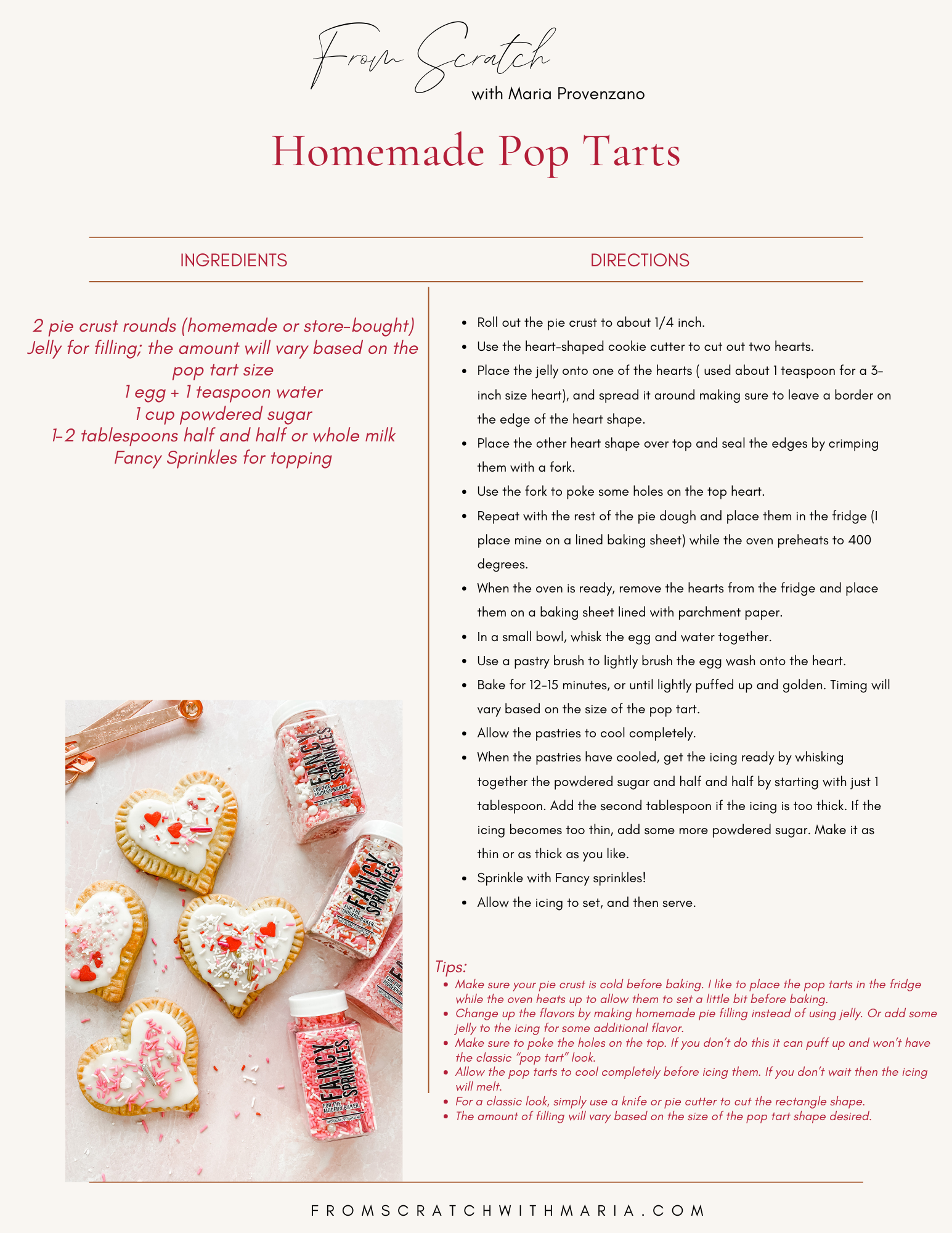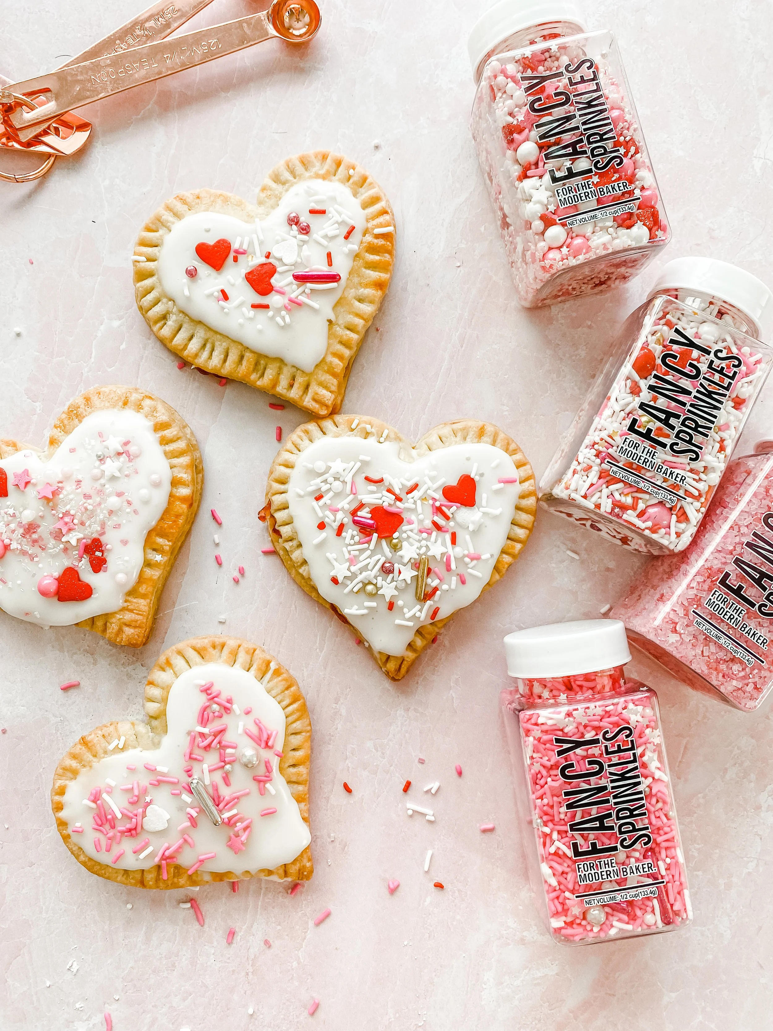 I decided that these would be fun to make for Valentine’s Day. So, I cut them into heart shapes with a cookie cutter. I made them extra fun and festive with these over-the-top Valentine’s Day sprinkles from Fancy Sprinkles. Order yours here for 15% off when you use the code: FROMSCRATCHWITHMARIA15